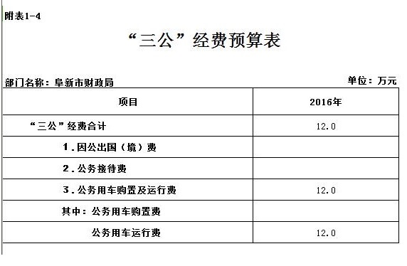 2016年“三公”经费预算数12万元,其中:公务用车购置及运行费12万元。