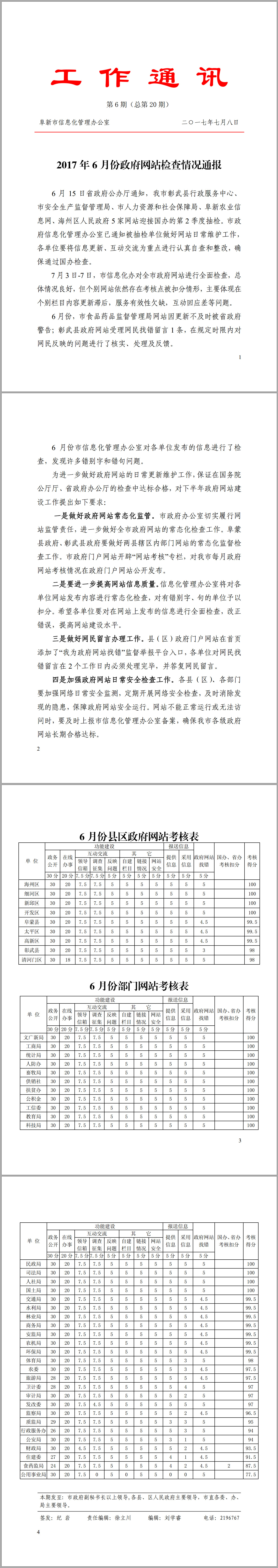 2017年6月份政府网站检查情况通报(《工作通讯》2017年第6期)