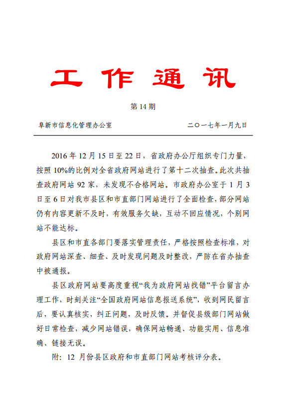 2016年12月份政府网站检查情况通报(《工作通讯》2016年第14期)