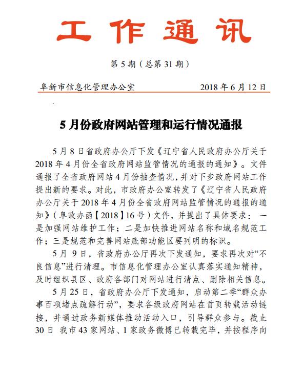 2018年5月份政府网站管理和运行情况通报