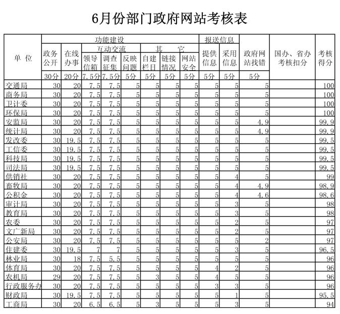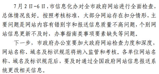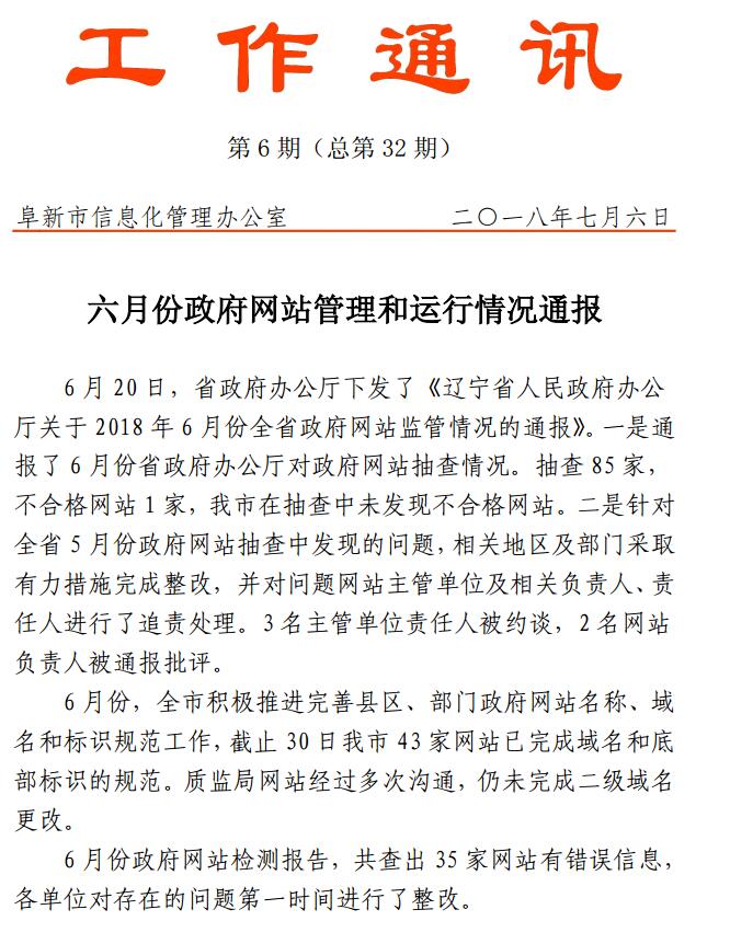 2018年6月份政府网站管理和运行情况通报