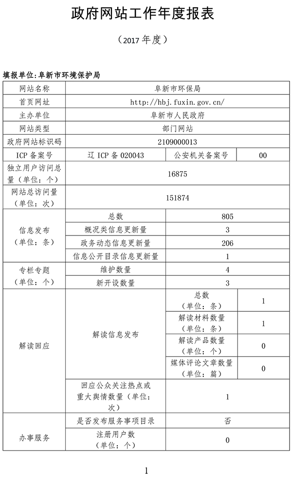 阜新市环保局政府网站年度公开报表
