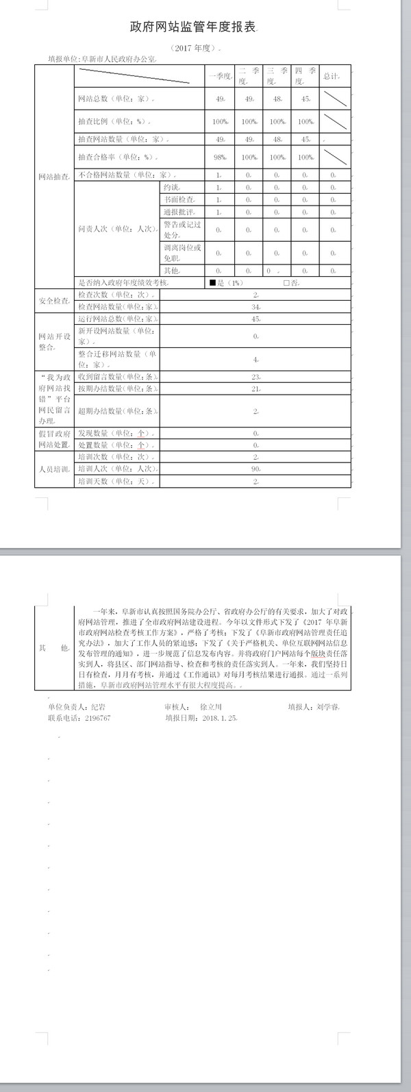 2017年阜新市政府网站监管年度报表