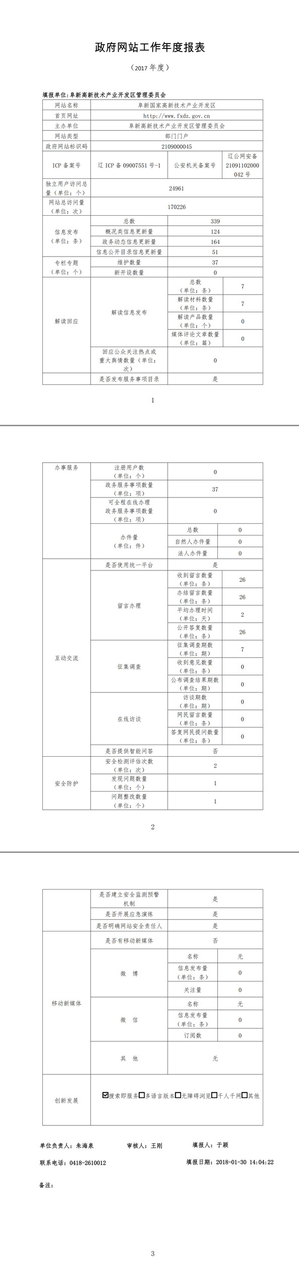 阜新市高新技术产业开发区政府网站工作年度报表
