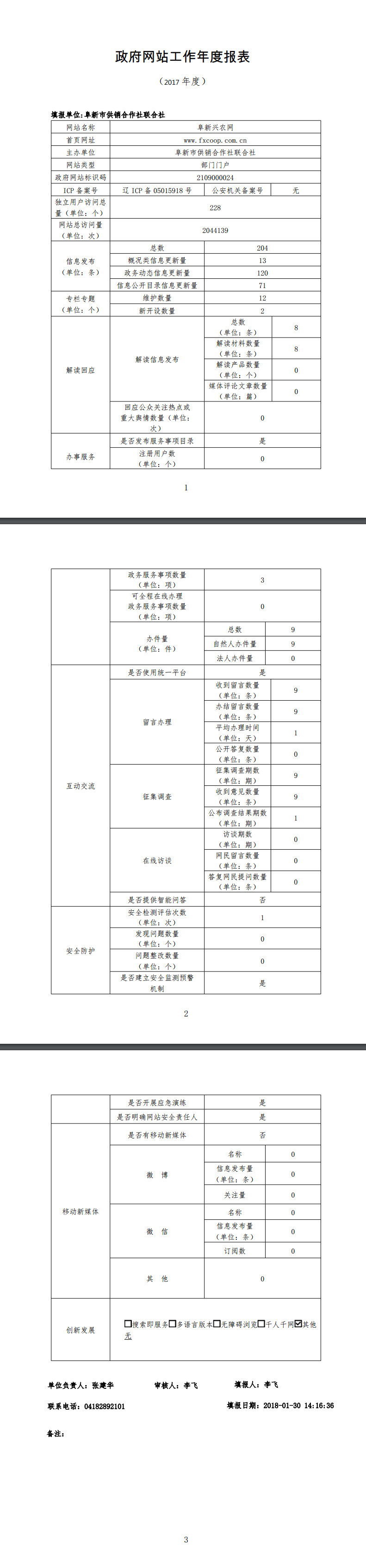 阜新市供销社政府网站工作年度报表