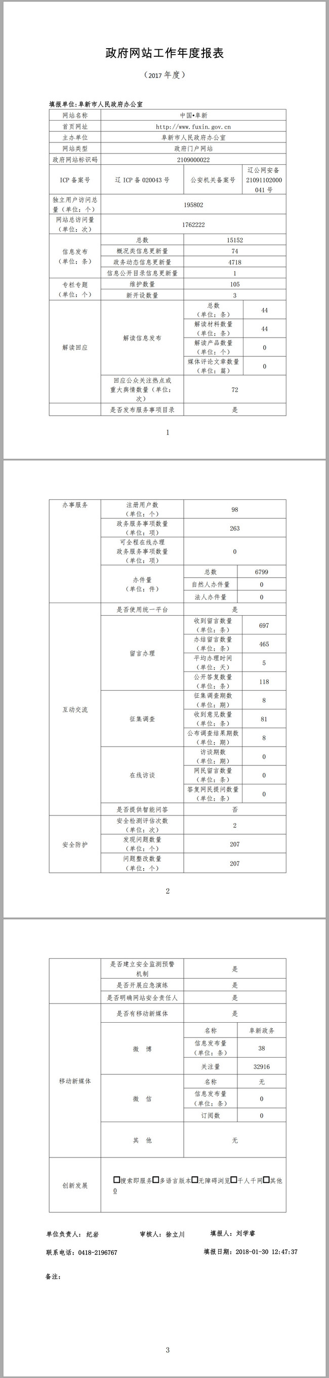2017年阜新市政府网站工作年度报表