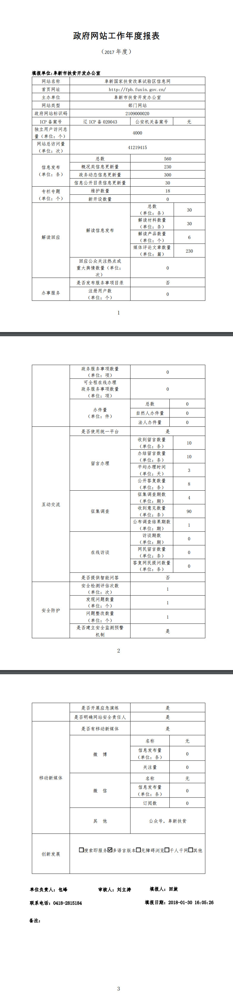 阜新市扶贫办政府网站工作年度报表