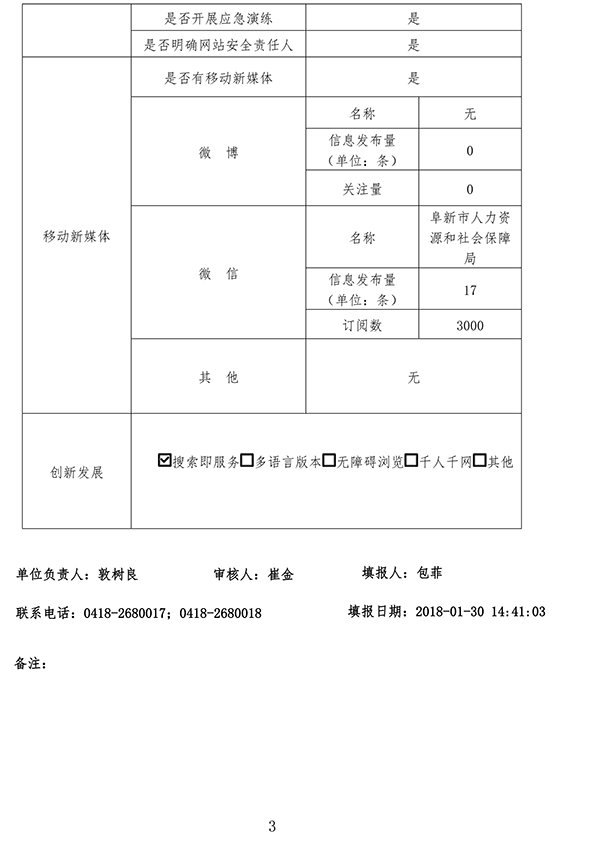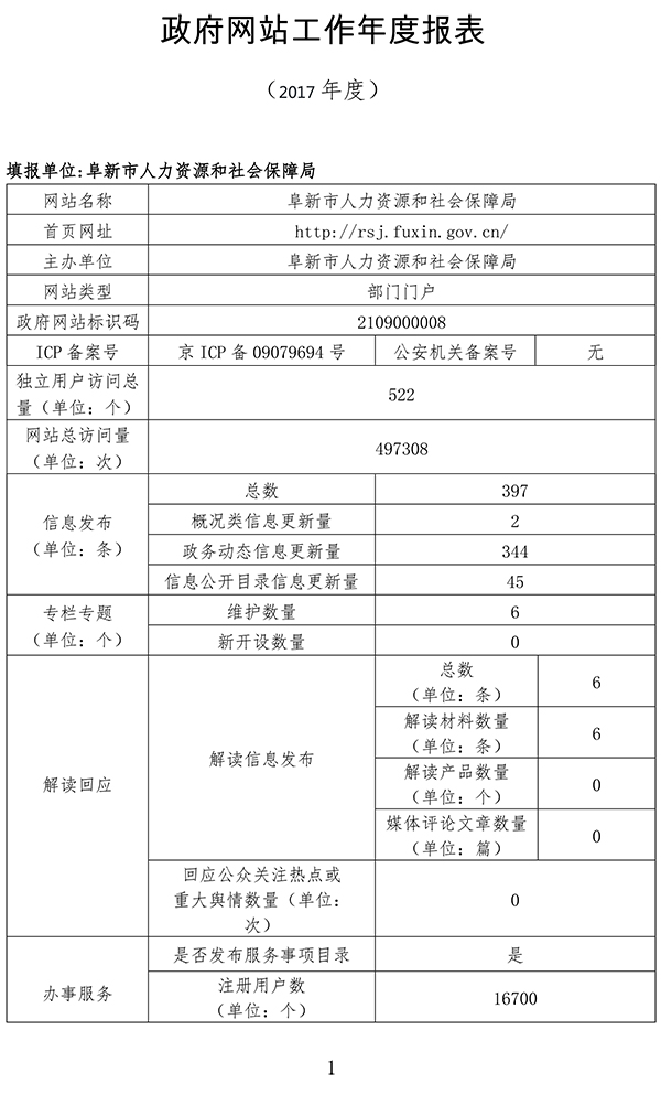 阜新市人力资源和社会保障局政府网站工作年度报表
