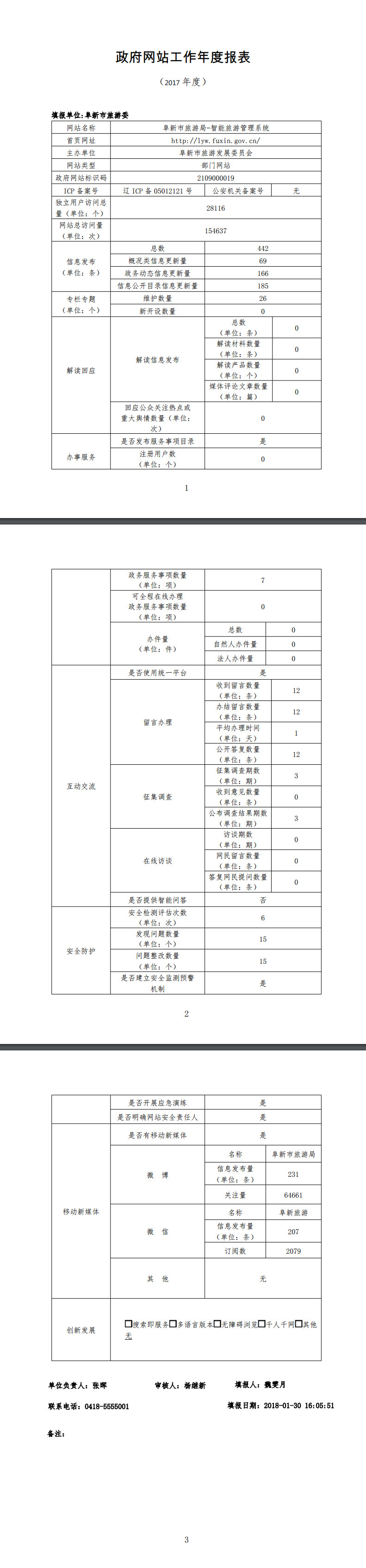 阜新市旅游委政府网站工作年度报表