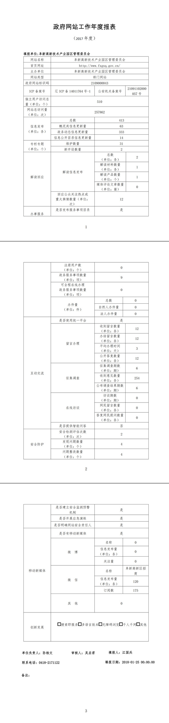 阜新市高新技术产业园区政府网站工作年度报表