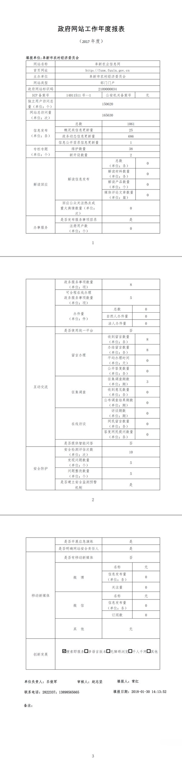 阜新市农村经济委员会政府网站工作年度报表