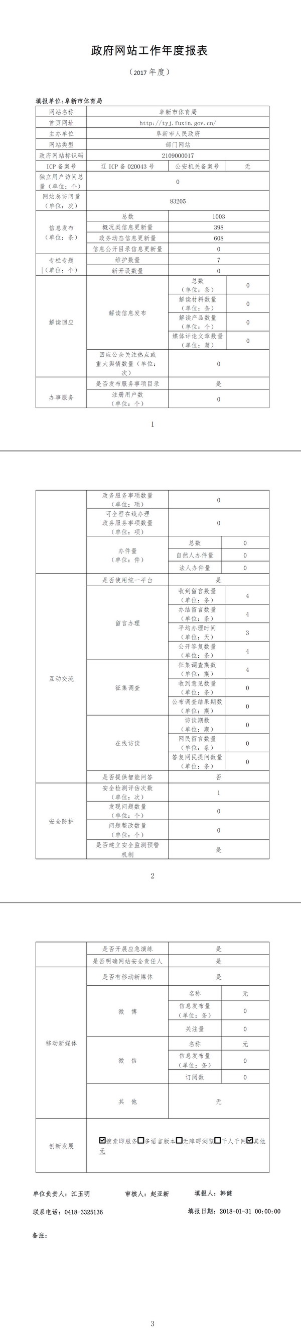 阜新市体育局政府网站工作年度报表