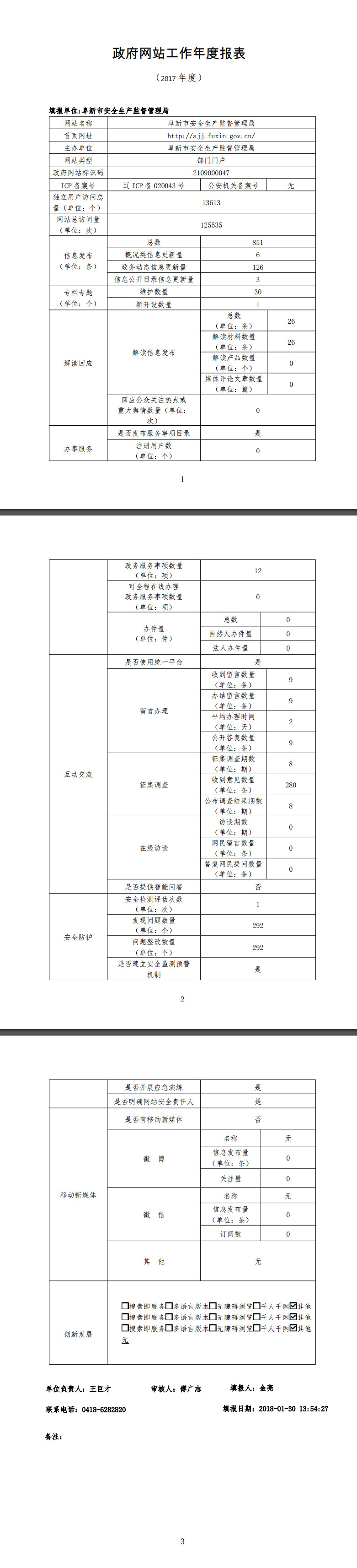 阜新市安监局政府网站工作年度报表