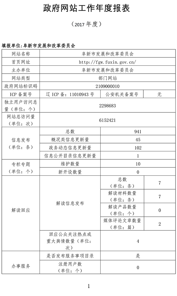 阜新市发展和改革委员会政府网站工作年度报表
