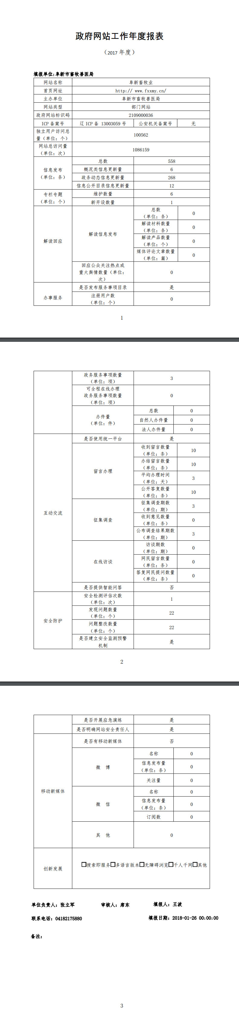 阜新市畜牧兽医局政府网站工作年度报表
