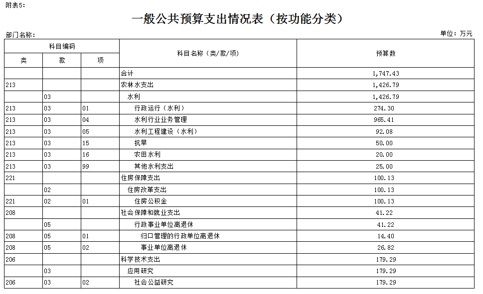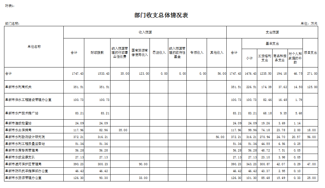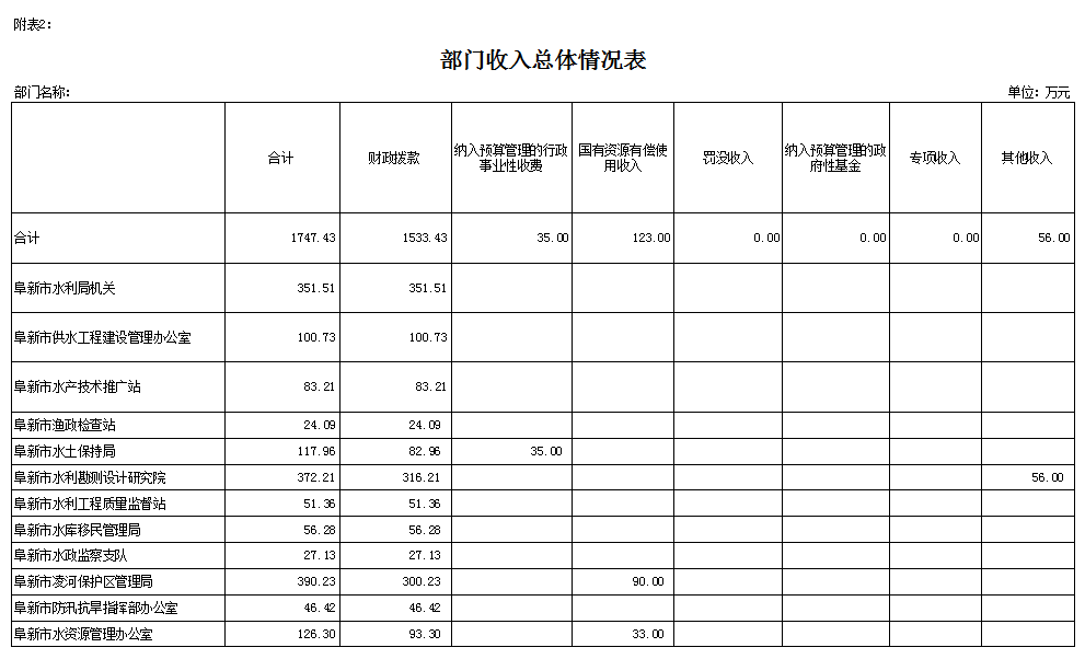 二、阜新市水利局部门预算公开表(见附表)