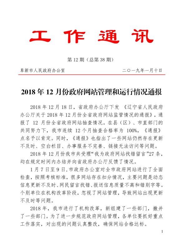 2018年12月份政府网站管理和运行情况通报