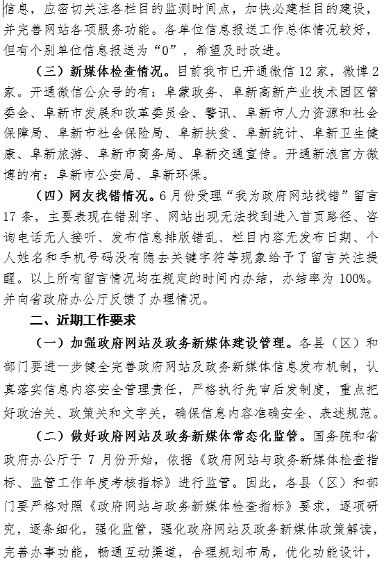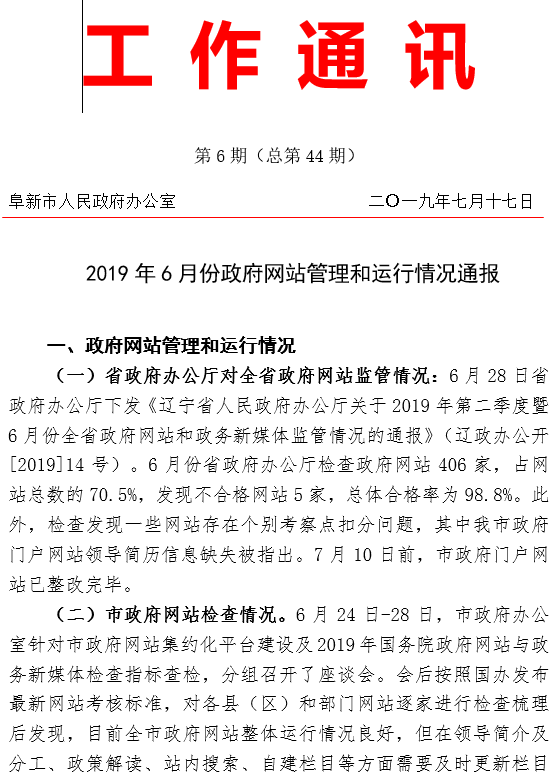 2019年6月份政府网站管理和运行情况通报