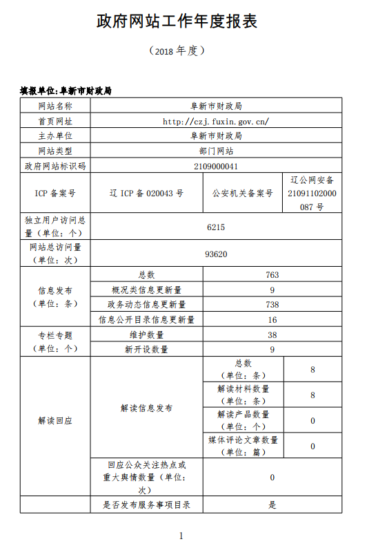 2018年阜新市财政局网站工作年度报表
