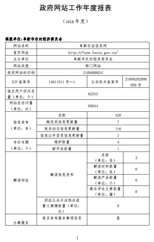 2018年阜新市农村经济委员会网站工作年度报表