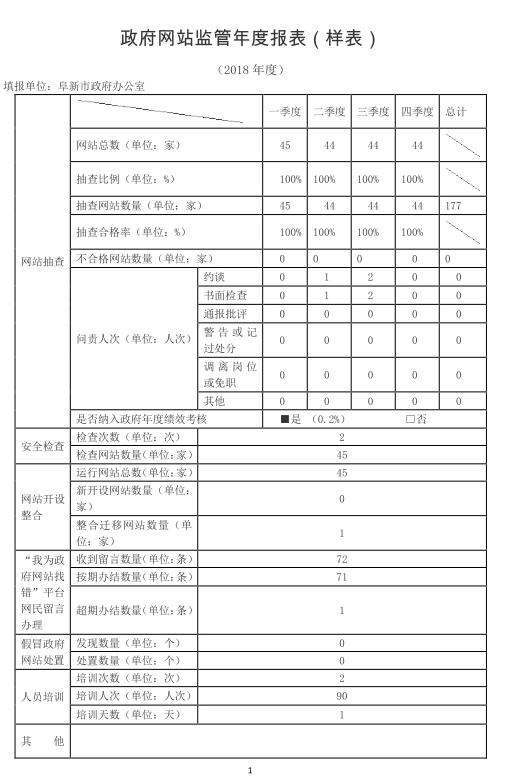 2018年阜新市政府网站监管年度报表