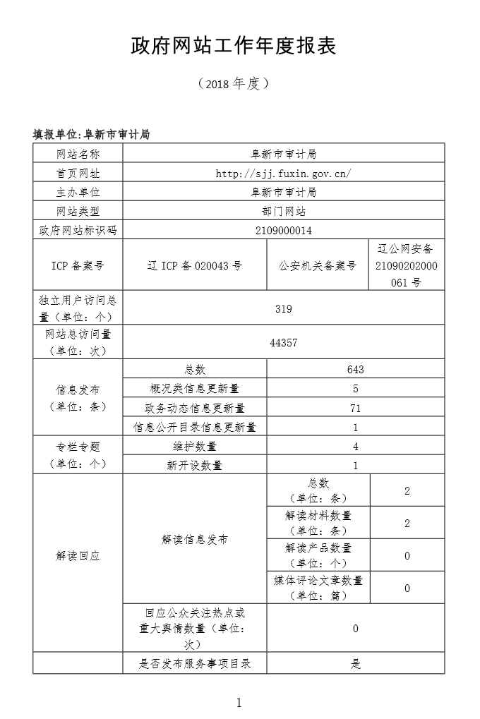 2018年阜新市审计局网站工作年度报表
