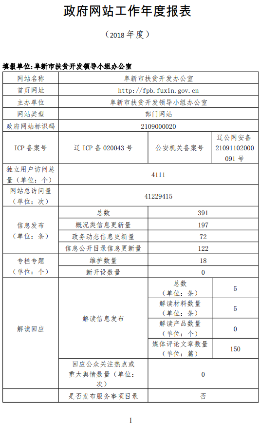 2018年阜新市扶贫开发领导小组办公室网站工作年度报表