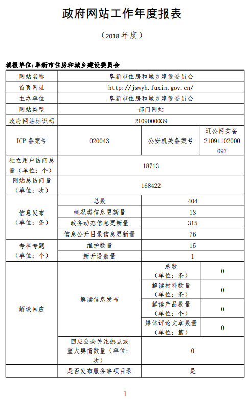 2018年阜新市住房和城乡建设委员会网站工作年度报表