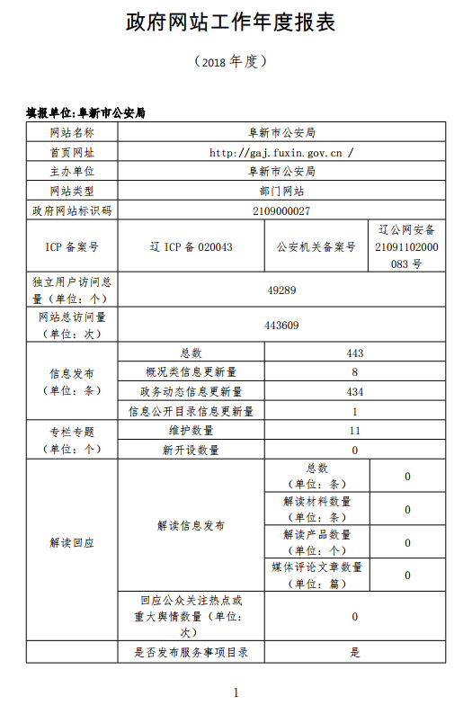 2018年阜新市公安局网站工作年度报表
