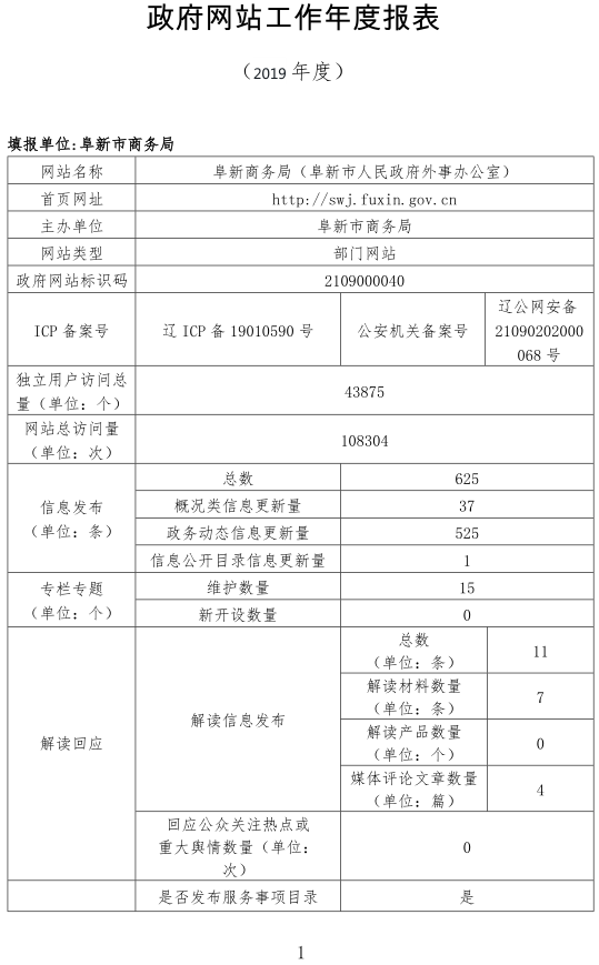 2019年阜新市商务局网站工作年度报表