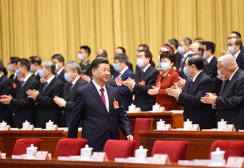 习近平、李克强、汪洋、王沪宁、赵乐际、韩正、王岐山和大会主席团成员在主席台就座。