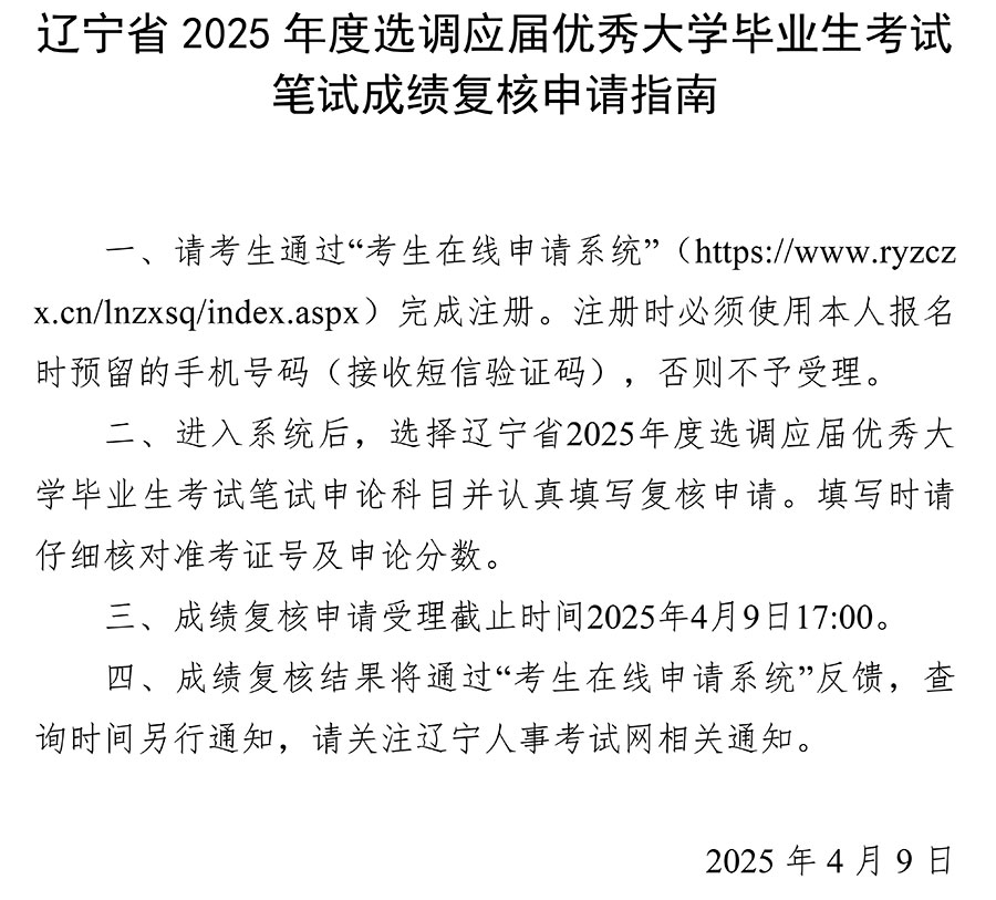 辽宁省2025年度选调应届优秀大学毕业生考试笔试成绩复核申请指南