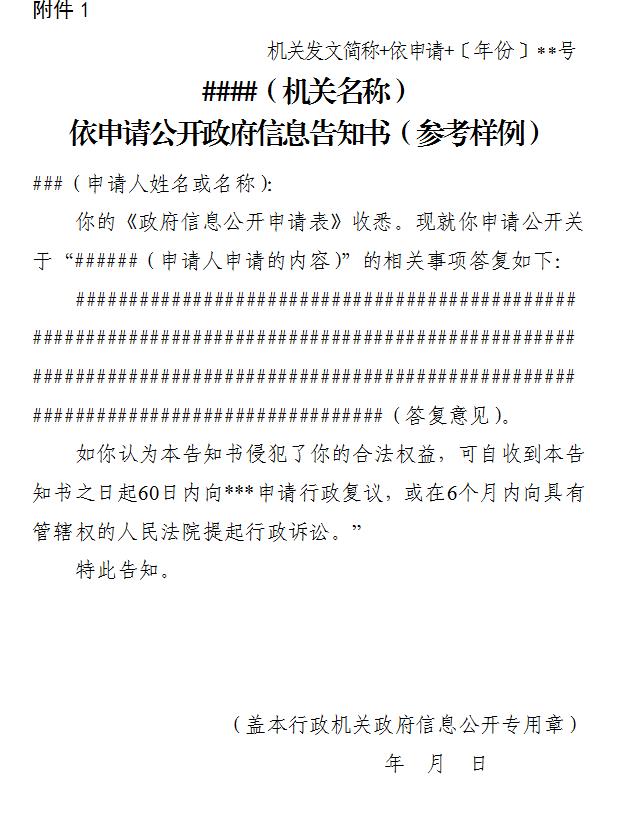 附件1:依申请公开政府信息告知书格式(参考样例)