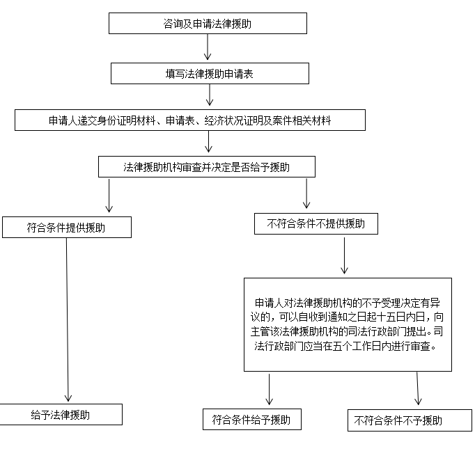 (法律援助机构受理、审查申请,指派承办人提供援助)